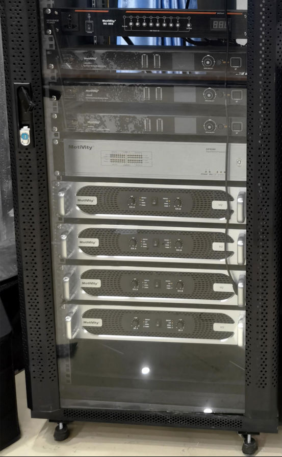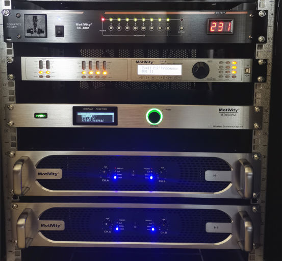 这整一扩声系统搭配H1功放、MA-1210F调音台、DP24处理器、SC-802电源时序器,保证了高品质的声效输出、保持了系统的稳定运行,实现了人员的实时便捷操控。