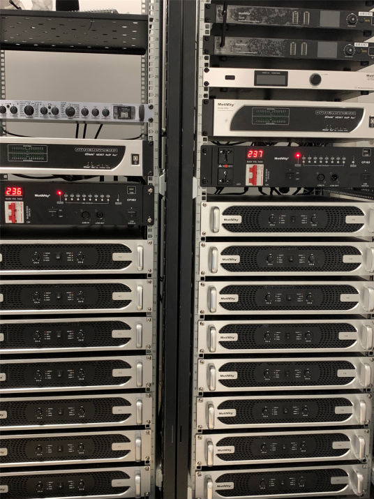 在功放方面,四个厅室均使用的是H系列数字功放,