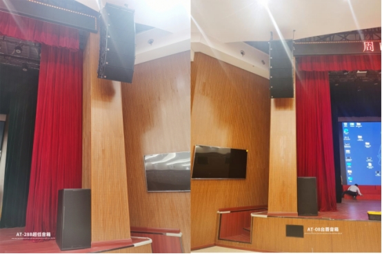 考虑到该场地的主要功能以会议报告为主、小型演出为辅,设计了2只AT-28B超低音箱放置在台口两侧,作为延展场地超低频的功能。