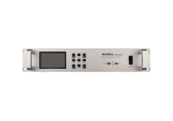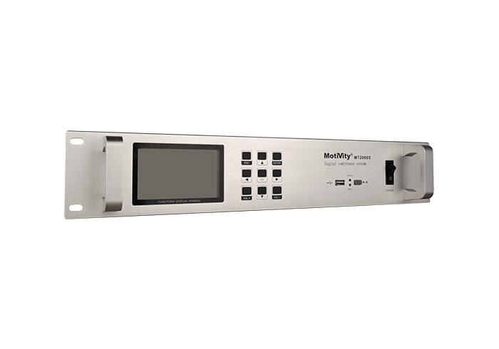 采用Topological network operation(拓扑式网络运算)数字集成电路技术,低功耗、高保真、极稳定;七种发言模式:主席专用、先进先出、后进先出、限制发言、自由讨论、压倒轮替、申请发言;七种发言人数::1-6(人任选 )、N(全开放);开机自检功能,连接状态不正常时主机产生蜂鸣;断电智能记忆功能,可记忆程序原运行状态。若意外断电后,通电即恢复最后一次设置; 通用USB录音接口,支持热插拔,可随意配搭常用电子产品使用。具有中/英文语言切换功能;内置大容量微机系统,采用800X480高像数TFT4.3寸彩屏显示系统设置内容;无需任何外接控制设