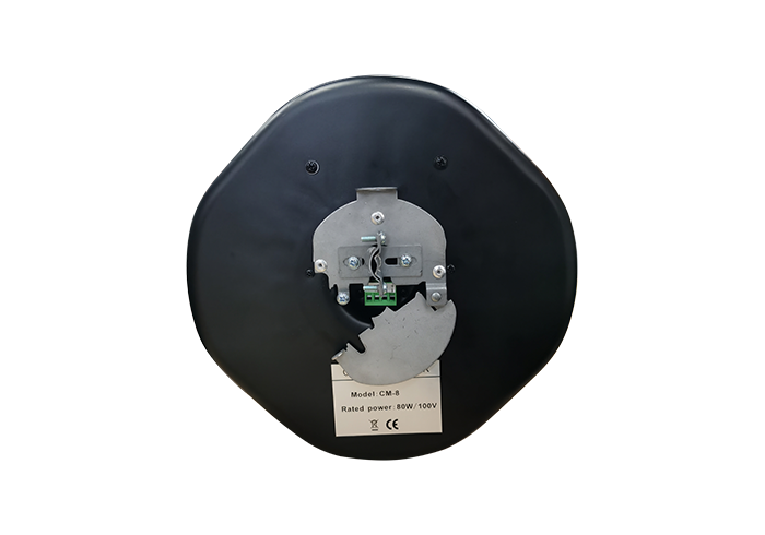 技术参数:系统类型:2单元2分频同轴倒相式额定功率:80W;最大功率:160W;峰值功率:320W阻抗:8 Ω灵敏度(1W@1m):91±3dB最大连续声压级:110dB指向特性(-6dB):90°H×90°V频响范围:65Hz-20kHz(-6dB)分频模式:被动式换能器配置:1英寸丝膜球顶高音单元×18英寸双音圈橡皮边聚丙烯中低音单元×1采用定压/定阻可选、防火式箱体设计连接器:4位螺丝压线端子网罩采用磁吸式安装定压式输入:80W/40W/20W@100V外圆尺寸:320 mm开孔尺寸(参考):Φ287mm体积(diam. × depth):Φ320 mm×234mm净重:4.75Kg颜色:白色面网,后罩黑色