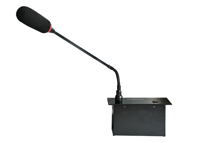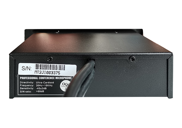 智能数字化设计控制电路,功耗低嵌入式设计,带发言指示灯环指示;锌合金压铸外壳,桌面式结构,外观精美;铝合金设计,美观、时尚、经久耐用高保真单指向性电容咪芯,声音还原、清晰度高、噪音小;优良抗手机干扰能力。315度全向弯折不锈钢软管单元自带2.1米单出8p连线,配备T3M连接线,安装简便,提高安装的效率会议单元支持热插拔功能,自带2.1米8P连接线;手拉手连接模式,安装简便,操作灵活类型:电容式指向性:单一指向性频率响应:40Hz-16KHz灵敏度:-43±2dB@1KHz输入电压:DC 9V(主机供电) 最小输入阻抗 :1KΩ信噪比:90dB(A)输出插座:2.0M 8P端子座 输入导线:2.0m 8P屏蔽线附件:防风海绵、2.0m 8PT3M屏蔽线开孔尺寸:(W×D):140 mm×40mm