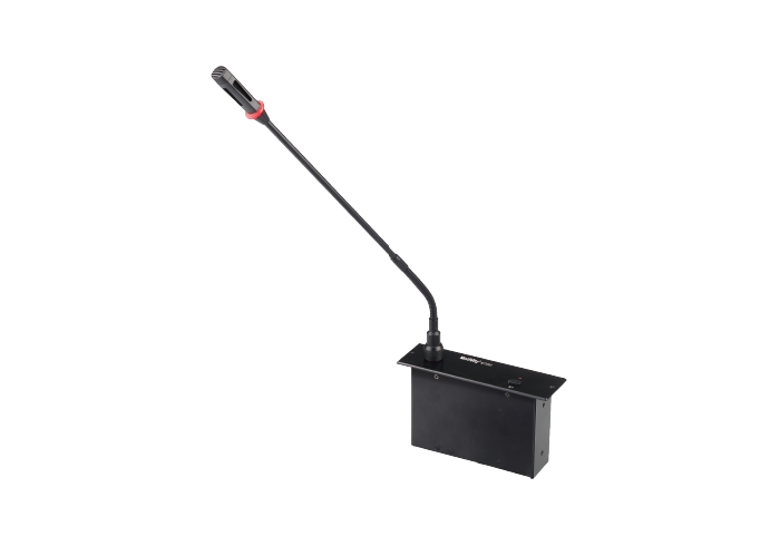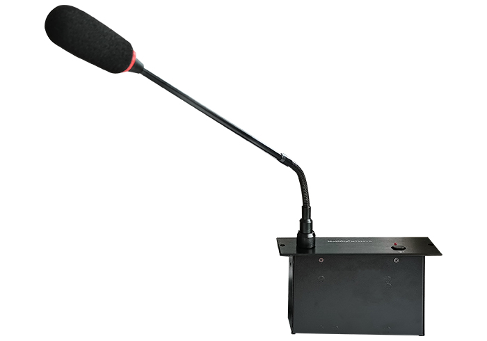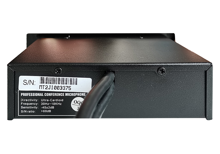 智能数字化设计控制电路,功耗低嵌入式设计,带发言指示灯环指示;锌合金压铸外壳,桌面式结构,外观精美;铝合金设计,美观、时尚、经久耐用高保真单指向性电容咪芯,声音还原、清晰度高、噪音小;优良抗手机干扰能力。315度全向弯折不锈钢软管单元自带2.1米单出8p连线,配备T3M连接线,安装简便,提高安装的效率会议单元支持热插拔功能,自带2.1米8P连接线;手拉手连接模式,安装简便,操作灵活类型:电容式指向性:单一指向性频率响应:40Hz-16KHz灵敏度(:-43±2dB@1KHz输入电压:DC 9V(主机供电) 最小输入阻抗 :1KΩ信噪比:90dB(A)输出插座:2.0M 8P端子座 输入导线:2.0m 8P屏蔽线附件:防风海绵、2.0m 8PT3M屏蔽线开孔尺寸:(W×D):140 mm×40mm