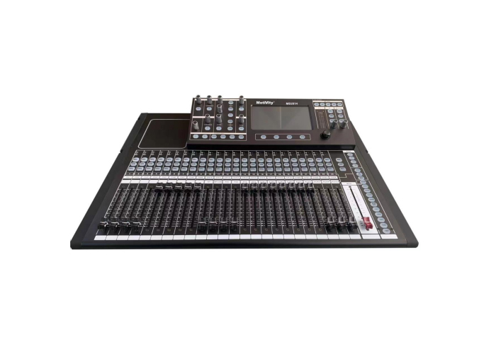 技术参数:显示屏:7”1024*600电容触摸屏;24 bit /48KHz 高性能 ADC / DAC,Linux系统,具备中英文界面切换;音频输入:24路Mic/Line,1组6.5立体声,1组3.5mm立体声,AES/声卡数字输入、MP3;音频输出:共14路输出,2路主输出,6路辅助输出AUX1-AUX6,4路编组输出SUB1-SUB4,1路立体声耳机监听输出;Mic输入具备增益调节、奇偶立体声联调功能,具备+48V幻象电源(MIC通道均可独立打开关闭)输入通道处理:压限器,高低通,5段参数均衡,延时,通道声像平衡调节;输出通道处理:高低通滤波,15-31段参数均衡,压缩器,延时,相位;通道参数快速拷贝功能、输入输出EQ ON/OFF