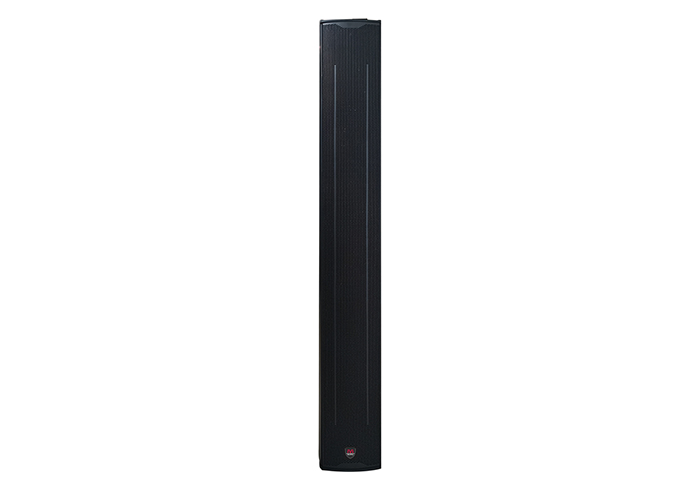 9单元内置2分频线性阵列音柱;由9个3寸全频单元和一个44mm球顶高音单元组成;3寸单元使用热压成形的高分子泡沫折环,顺性好,频带宽的特性;灵敏度(1W@1m):95dB;额定功率:300W,节目功率:1200W,峰值功率2400W;频率响应:120Hz—20KHz;阻抗:8Ω;声压级: 119dB@300w (最大声压级125dB@2400w);标称指向性(-6dB):H120°×V60°箱体材质:优质木工板;箱体尺寸(H×W×D):961mm×106mm×140净重:11.2kg;配件:含壁挂支架;该系统表面处理为喷涂黑色水性砂面漆,性能良好采用金属防护网,4mm六边形透声孔,内衬防尘透声网两侧各一条燕尾式万能长槽,延伸向外连接功能每个箱体背后均有两组功率输入连接口,也可作并箱功能背部多个预备螺丝,方便安装